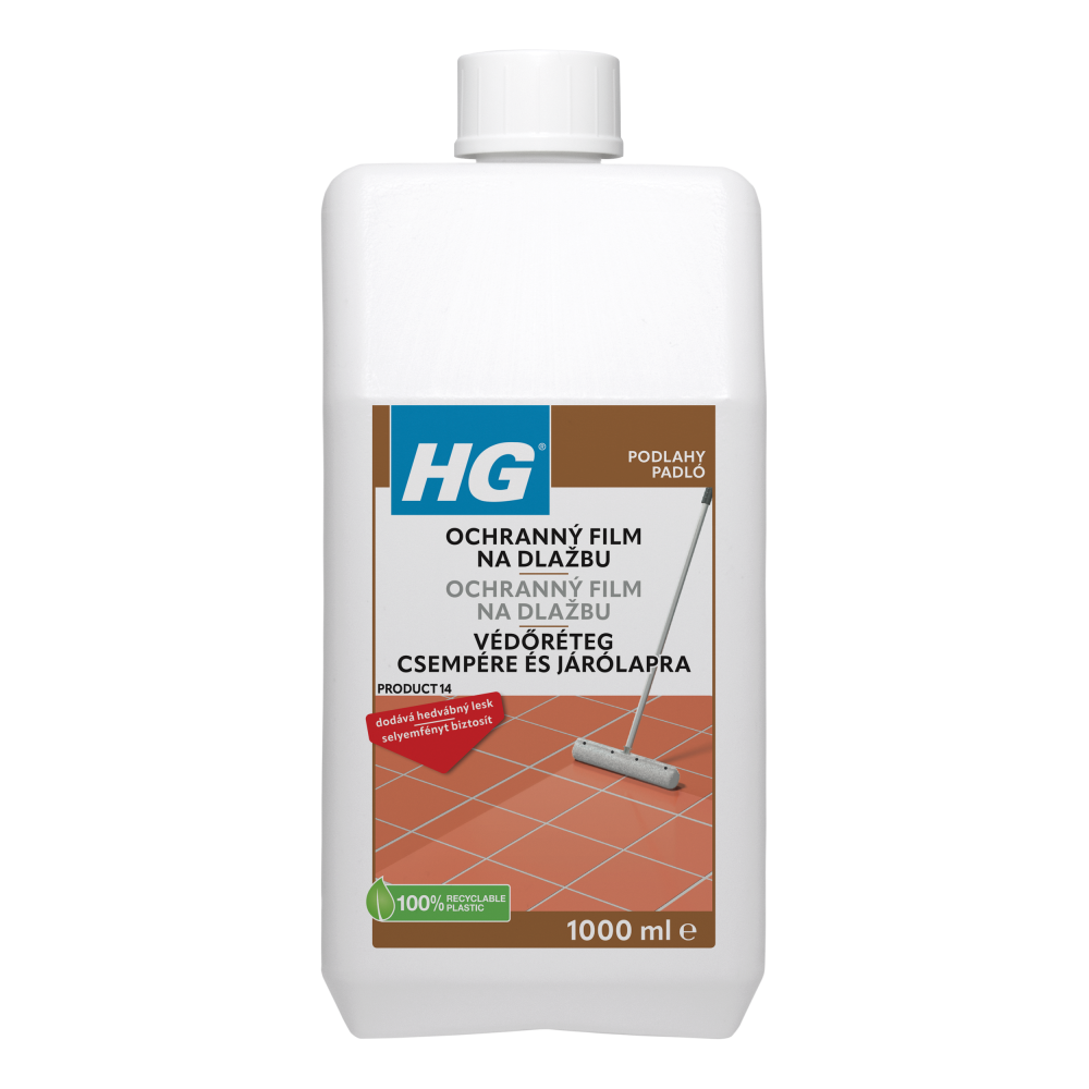 HG ochranný film na dlažbu je tekutá polymerová emulze, která se snadno nanáší na všechny typy podlahových dlaždic a břidlice. Po zaschnutí vytváří tato emulze jemně lesklý a tenoučký, ale velice pevný ochranný film, který poskytuje dlaždici ochranu proti skvrnám, nečistotám, škrábancům, zabraňuje únavě materiálu a přitom prohlubuje barvu a strukturu dlaždic. Tento HG ochranný film na dlažbu s leskem má navíc protiskluzový účinek.