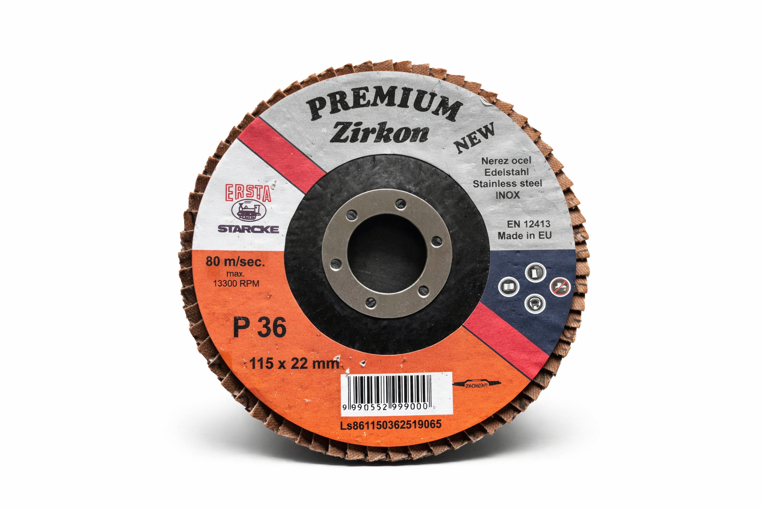 Lamelový brusný kotouč PREMIUM Zirkon je určený pro efektivní broušení a opracování kovových materiálů, zejména nerezu (INOX) a nerezové oceli.