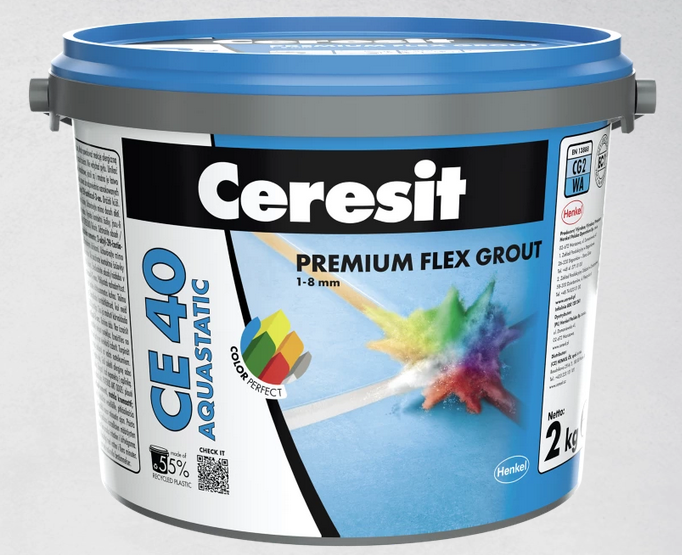 Ceresit CE 40 Aquastatic je flexibilní cementová spárovací hmota určená pro spárování keramických obkladů a dlažby, skla i přírodního a umělého kamene (včetně mramoru).