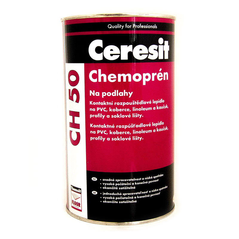CH 50 Chemoprén na podlahy PROFI je kontaktní lepidlo určené pro profesionální lepení podlahových krytin. Zajišťuje pevné a trvalé spojení při správném technologickém postupu a je vhodné pro použití na různé druhy podkladů.