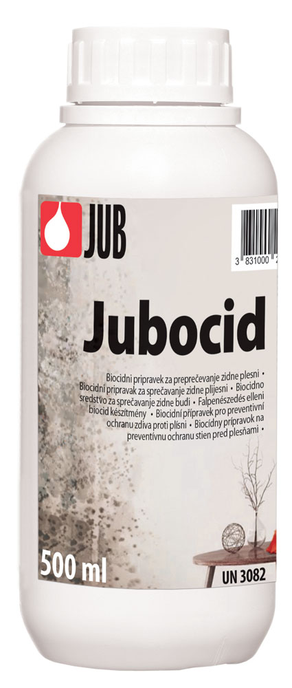 JUBOCID je vodní suspenze biocidních látek, která jako přísada do malířských disperzních barev účinně brání, resp. znemožňuje růst a rozvoj většiny nejrozšířenějších plísní na zdivu. Výrobek je určen pouze jako preventivní fungicidní
