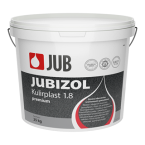 JUBIZOL Kulirplast 1.8 premium je akrylátová omítka vyrobená z obarveného křemičitého granulátu. Je určena k dekorativní ochraně různých druhů jemně vyrovnaných fasádních povrchů, zejména podezdívek. Má dobrou přídržnost k různým jemně zrnitým stavebním podkladům: k základním omítkám fasádních tepelně izolačních systémů (vhodná pouze na systémy s izolací z pěnového nebo extrudovaného polystyrenu), klasickým jemným cementovým omítkám, k rovným betonovým povrchům i vláknocementovým a sádrokartonovým deskám, dřevotřískám apod. Speciálně vybrané unikátní odstíny omítky JUBIZOL Kulirplast 1.8 premium zajišťují žádanou eleganci, v kombinaci s odstíny JUBIZOL fasád umožňují řešení ve stylu moderních architektonických trendů. Inovativní technologie nanášení materiálů se speciálně vybranými pigmenty a použití nejmodernějšího pojiva s vysokou UV ochranou zajišťují vynikající odolnost proti povětrnostnímu zatížení a vysokou vodoodpudivost výrobku. JUBIZOL Kulirplast 1.8 premium má vynika
