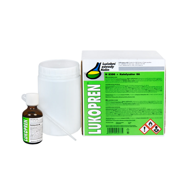 Silikonové formovací a zalévací materiály Lukopren N 8100 a 8200 jsou dvousložkové kaučuky s kondenzačním typem vytvrzování. Po smíchání kaučukové pasty s Lukopren Katalyzátorem 8A dochází během několika hodin při běžné teplotě k vulkanizaci v celé hmotě za vzniku silikonové pryže. Ta se vyznačuje výbornými mechanickými vlastnostmi, vysokou odolností a vynikající schopností přesně kopírovat jemné detaily.
