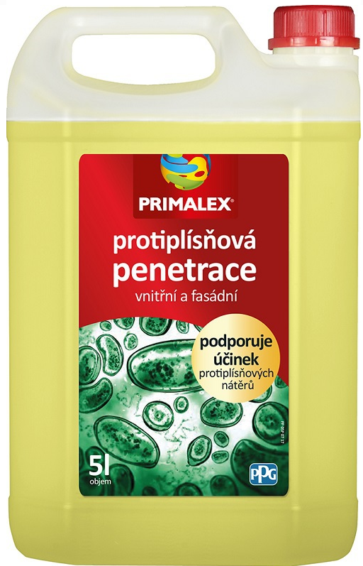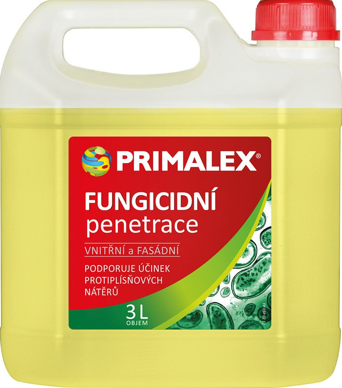 Primalex FUNGICIDNÍ PENETRACE je speciální penetrační prostředek, který omezuje tvorbu plísní díky aktivním fungicidním složkám a proniká hluboko do podkladů. Tím je nejen sjednocuje a zpevňuje, ale snižuje i tvorbu vlasových trhlinek při finálních povrchových úpravách. Současně zlepšuje přilnavost dalších vrstev nátěrů. Při správné aplikaci zachovává také přirozený průchod vodních par zdivem.