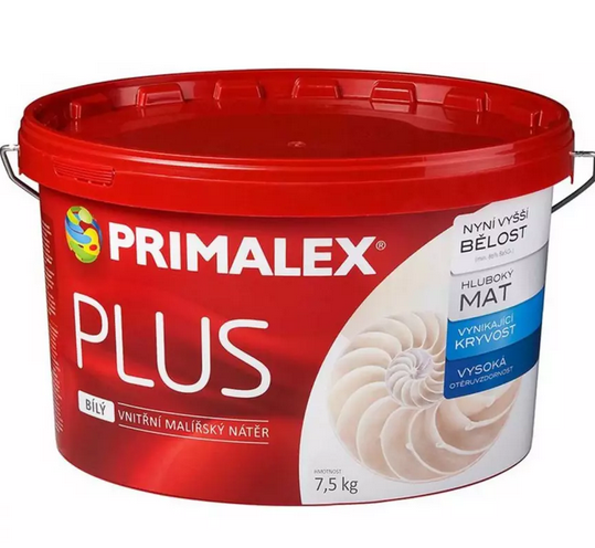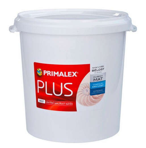 Primalex PLUS Bílý je nejprodávanější a nejoblíbenější produkt značky Primalex v oblasti vnitřních malířských nátěrů. Současná receptura zachovává osvědčené vlastnosti – výbornou kryvost a vysokou otěruvzdornost a zároveň garantuje jeho vyšší bělost (min. 86% BaSO4) a hluboce matný konečný vzhled produktu.