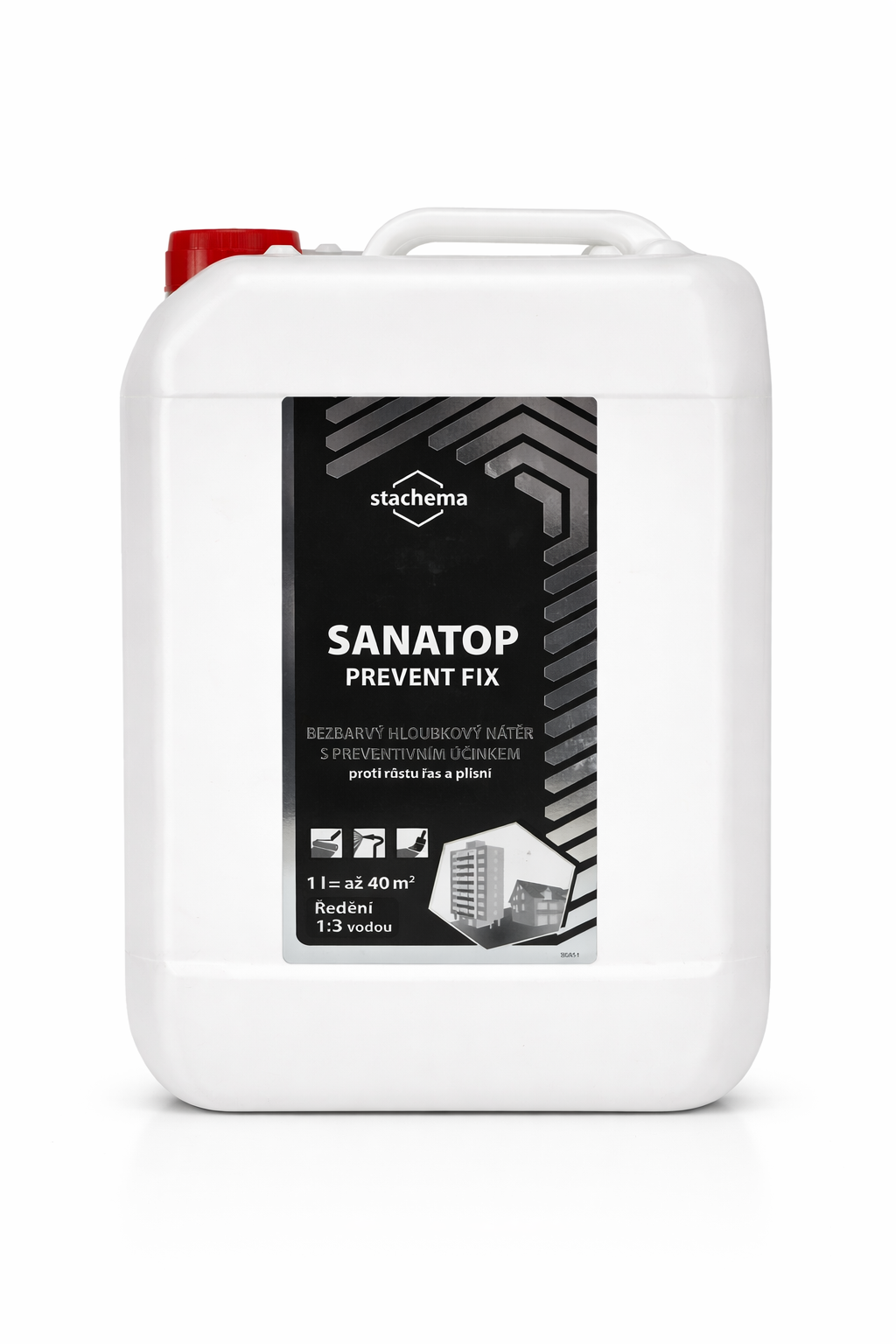 Sanatop Prevent Fix je bezbarvý impregnační hloubkový nátěr určený k preventivní ochraně stavebních materiálů proti růstu řas a plísní. Je vhodný zejména pro exteriérové použití na zdivo, omítky, beton, střechy a další savé minerální podklady.
