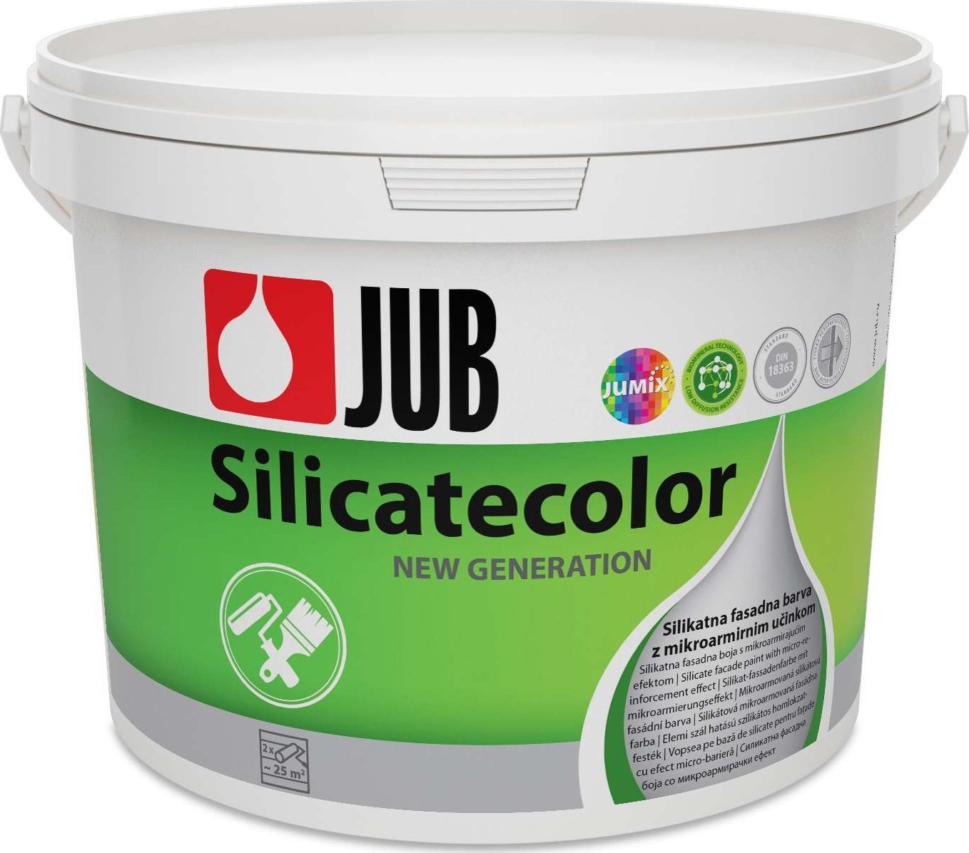 SILICATECOLOR je mikroarmovaná fasádní barva, vyrobená na základě draselného vodního skla. Je vhodná zejména k dekorativní ochraně různých druhů pevných, reliéfně upravených, resp. hrubých, třeba i vyspravovaných, z hlediska hrubosti ne zcela jednotných minerálních fasádních povrchů (nejméně měsíc staré vápenné a vápenocementové omítky). Barevný film, vyztužený tenkými syntetickými vlákny nepraská v místech nadměrně silné vrstvy barvy (rýhy, žlábky, jamky) a přemostí vlasové trhliny šířky do 0,3 mm. Je možné i nanášení na staré, pevně držící silikátové barevné nátěry a na minerální a silikátové dekorativní omítky.