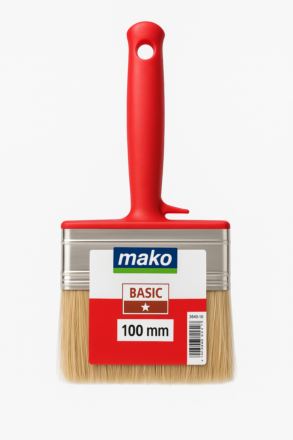 Základní plochý štětec z řady BASIC o šířce 100 mm a 120mm s pevnou plastovou rukojetí v červené barvě. Ideální pro nenáročné nátěry, opravy a hobby použití.