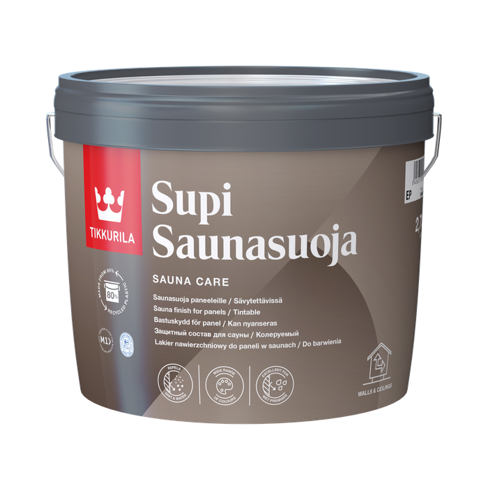 Vodou ředitelný tónovatelný akrylátový lak na vnitřní povrchové úpravy vlhkých místností, jako jsou sauny a převlékárny. Povrchy chrání před vlhkostí a znečištěním. Obsahuje protiplísňové činidlo, které chrání ošetřovaný povrch.