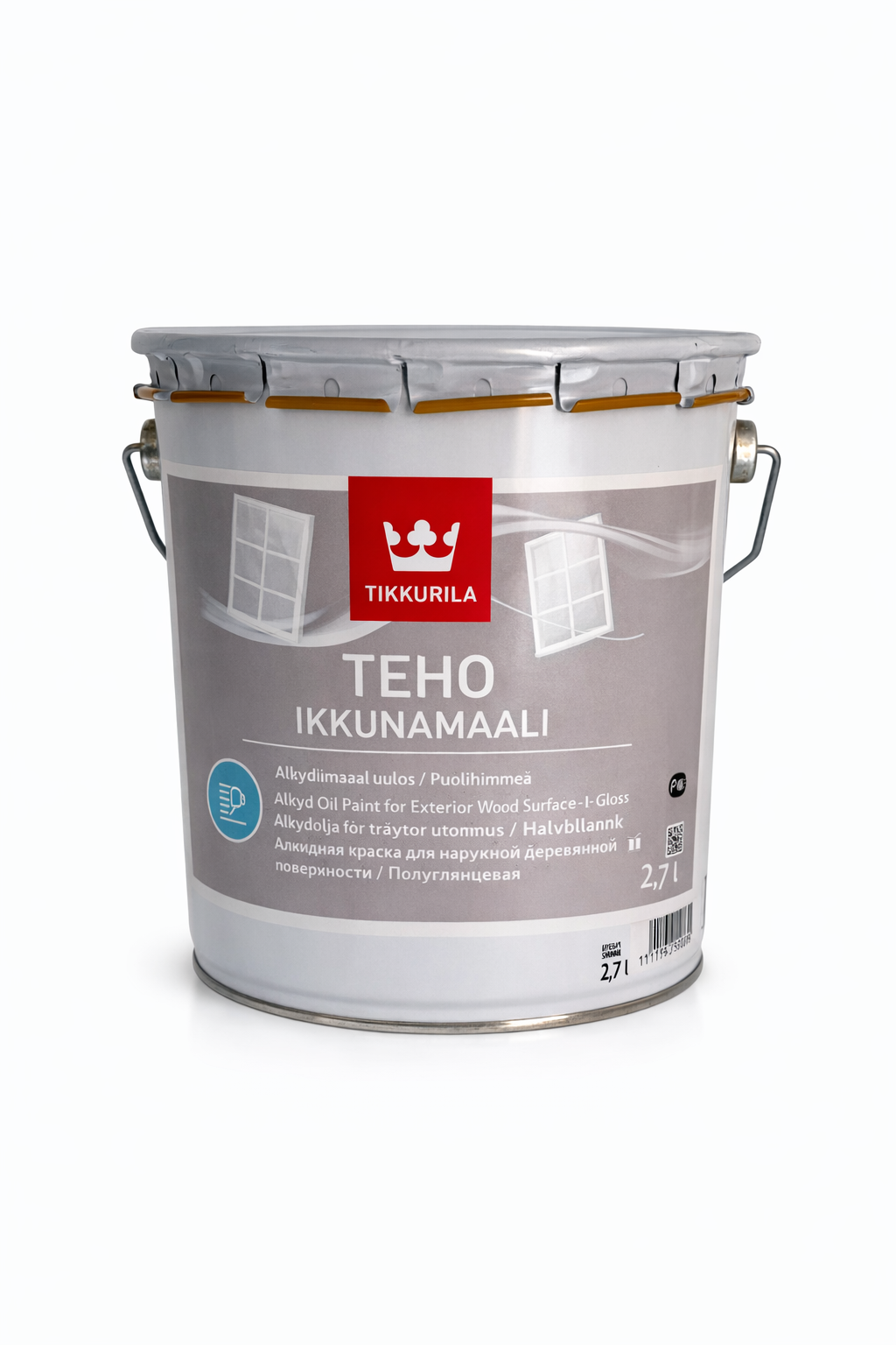 Tikkurila Teho Ikkunamaali je tradiční alkydová barva určená především pro ochranu a dekoraci dřevěných okenních rámů a venkovních dřevěných prvků. Díky své odolné alkydové bázi nejenže krásně zvýrazní povrch, ale zároveň poskytuje dlouhodobou ochranu proti vlhku, UV záření a povětrnostním vlivům. Pololesklý finiš dodává dřevěným oknům elegantní vzhled a jednoduchou údržbu.
